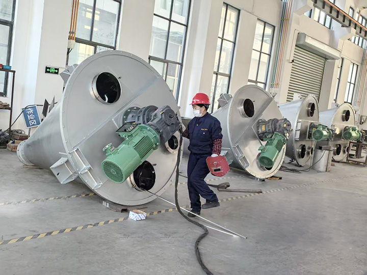 適用范圍:單錐雙螺旋錐形混合機普遍用于化工、冶金、食品、制藥、化肥、涂料、顏料、染料、農藥、橡膠飼料、添加劑、耐火材料、精良化工、新材料、電子塑料、陶瓷、礦山、建材等各行業。該混合機對混合物料適應性廣,粉料、顆粒狀物料、漿料或粘稠體的混合、攪拌、可配備噴液噴淋系統,可按用戶要求設計成真空狀態、帶壓狀態、加熱或冷卻等工藝條件,滿足不同工藝狀況下物料的混合、攪拌。對熱敏性物料不會產生過熱,對顆粒物料不會壓饋和磨碎,對比重懸殊和粒度不同的物料混合不會產生分層離析現象,對粗料、細料和超細粒,纖維或片狀的混合也有良好的適應性。