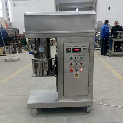 5L雙行星混合攪拌機有高速、低速、活動刮板作攪拌、剪切、刮壁、溶解用。低速運轉的攪拌錨使物料在密閉容器內(nèi)上下翻動、剪切和混合,高速運轉的齒形分散盤與混合的物料產(chǎn)生強烈的碰擊和剪切,隨著攪拌錨的旋轉,行星架上的活動刮刀隨著旋轉,把釜體上的物料完全刮掉,使聚集物完全、徹底地達到混合、分散、溶解的要求。在其高低速的不同作用下,使物料能夠達到均勻的混合和分散。