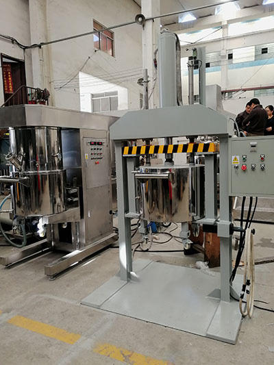 行星分散攪拌機有高速、低速、活動刮板作攪拌、剪切、刮壁、溶解用。低速運轉(zhuǎn)的攪拌錨使物料在密閉容器內(nèi)上下翻動、剪切和混合,高速運轉(zhuǎn)的齒形分散盤與混合的物料產(chǎn)生強烈的碰擊和剪切,隨著攪拌錨的旋轉(zhuǎn),行星架上的活動刮刀隨著旋轉(zhuǎn),把釜體上的物料完全刮掉,使聚集物完全、徹底地達到混合、分散、溶解的要求。在其高低速的不同作用下,使物料能夠達到均勻的混合和分散。